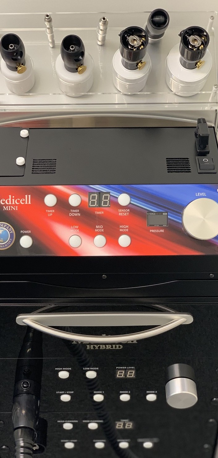 メディセルは、皮膚を直接「吸引」することによって筋膜の癒着を剥がしていく、特殊な専用機器です。